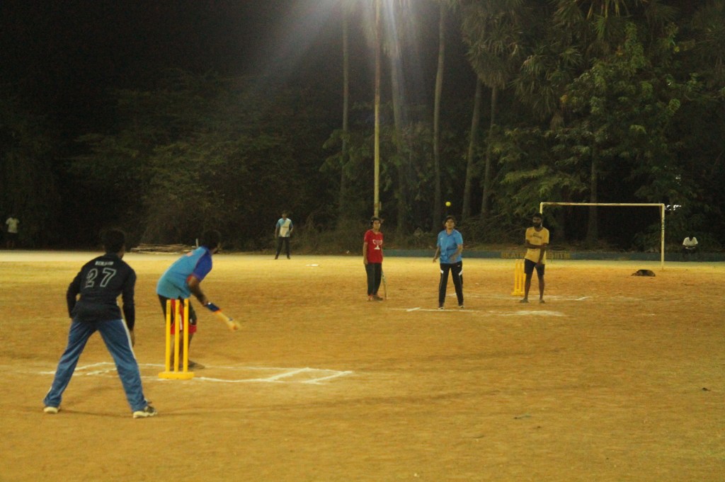 Aniket was almost caught out by Hari, but then he collided with Ammu. There were good saves by Santhosh and Adithya. Jithin was caught out by Monish (Wicket Keeper) in Santhosh’s over. Monish was doing his job well and Santhosh was bowling aggressively. Nishant was caught out by Biyas, a long catch, which was safe in Biyas’s hands.