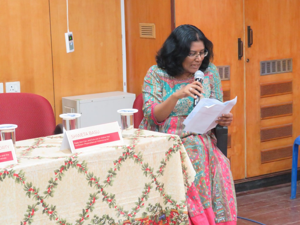 The third paper was about the depictions of violence in japanese fanfictions or yaoi. These yaoi are generally written by women fans intended for female readers, although they feature homosexual male characters. The themes explored include BDSM, kinks, sexual violence, questions of consent, and other such explorations of sexuality. This does not align with the understanding that women are supposed to write their own desires and their own bodies. The anonymity of these forums also allows these writers the self gratification of being able to claim their desires. They also have a degree of self awareness, that they are perverse but also subversive, and reclaim terms that refer to them as deviant. The speaker also spoke of the differences of fanfiction written in the Western world and Japan. While in western “slash” or homosexual fanfiction, the most popular characters exhibit overdetermined masculinity and fit into patriarchal norms like being muscled superheroes, as in the case of Captain America and Bucky Barnes. Meanwhile, the Japanese ideal takes a gendered perspective and features the prepubescent “beautiful boy”. The anime or manga that these characters are from are visually graphic forms, resulting in fanfiction that is also very graphic and descriptive. These literary explorations often feature rape as a backstory or motivation for antisocial behaviour and angst, and stories involving non-con (non-consensual) and dub-con (dubious consent) often end with the forgiveness on the part of the victim becuase of love, falling into the trope of hurt/comfort – hurtful situations ameliorated by romance. In questioning the motivations of these writers, and why they would want to write about something they wouldn’t want to happen to themselves, it is important to keep in mind the fact that fanfiction forums are a space that encourages the marginalized to express themselves. As opposed to the mostly abstinence-focused sex education that is available in most places, fanfiction becomes a source of information. However, actual gay men see this as an objectification rather than representation, since it is produced and consumed by women. These stories also set impossible body standards and also reinforce heterosexual gender norms and ideas of submissiveness. Therefore Yaoi provides an opportunity for sexual exploration by women while not actually involving the female body, thereby not being threatening.