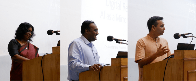 Moderated by Dr Sudarsan Padmanabhan, faculty at DoHSS, IIT Madras, this panel sought to focus on questions of democracy, electoral politics, policy-making and governance in the face of the wave of Artificial Intelligence. The panellists were Anand R and Yatin Satish from DoHSS, IIT Madras, and Mrinalini Manda from Mount Carmel College, Bangalore.
