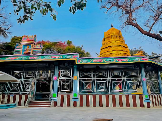 If you take a quiet bylane on Delhi Avenue, you find yourself strolling down a curved path flanked by evergreens on both sides, leading up to the temple after crossing a small bridge. If you go there between 7 AM – 10 AM and 5 PM – 8 PM, you’ll find the clean, spacious temple premises filled with a few priests and residents gathered to attend the aarti. The jingling bells and the scent of incense will lead you to the sanctum sanctorum, and you can feast your eyes on the beautifully adorned idol of the goddess. The pradakshina path around the garbha griha has intricate, colourful idols of different forms of gods and goddesses, adding to your knowledge pool of Tamil idolatry. Other tiny temples also bedeck the premises, surrounding the main temple.