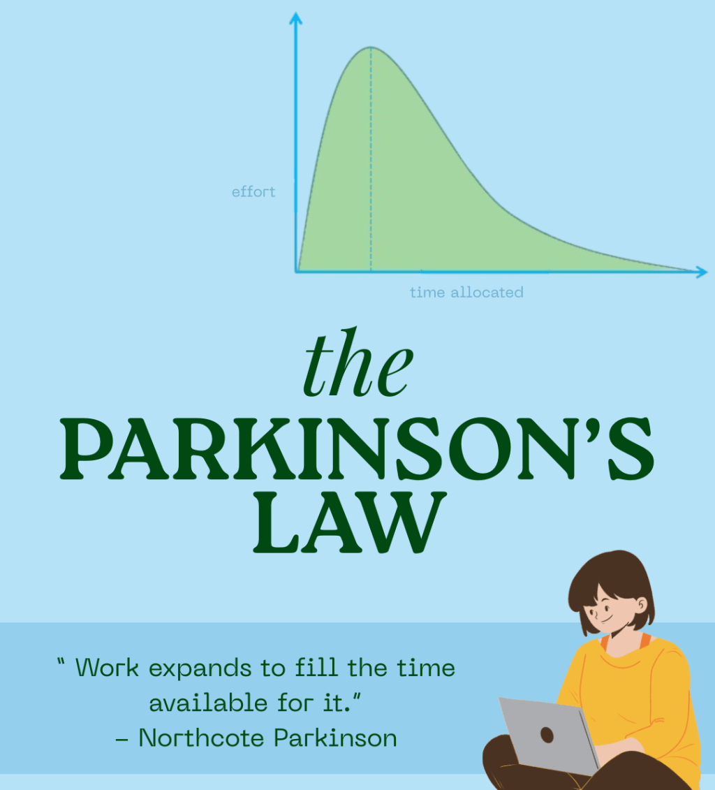 The contrast between the rest days and the work days taught me that my approach sported a cognitive error, an all-or-nothing way of doing things: I’d either study to the point of exhaustion or take the entire day off. I realized I could modify my approach to sustain momentum by working shorter hours but showing up daily. This would also keep burnout at bay. Now, the goal of this article is not to condone a culture of toxic productivity, which is defined by the exhausting rat race where, even when no one’s going anywhere, everyone’s expected to keep going, somewhere. But the magic of Parkinson’s law is that there is another way to live, beyond the bounds of other-imposed deadlines, by undertaking self-guided joyful journeys dictated by your own time, pace and convenience. This goes beyond the world of academia to all the directions we’re pulled in, be it passion projects, fitness routines or social hangouts. Living intentionally and being deliberate with time is the first step towards a well-lived life.