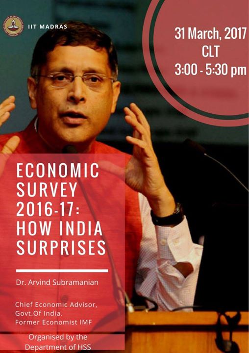The Department of Humanities and Social Sciences hosted a talk on “Economic Survey 2016-17: How India Surprises” by Dr. Arvind Subramanian, Chief Economic Advisor, Govt. of India. This much anticipated talk started at 3 p.m. with a full house in the Central Lecture Theater in IIT Madras on 31 March , 2017. Dr. Subramanian began Read More